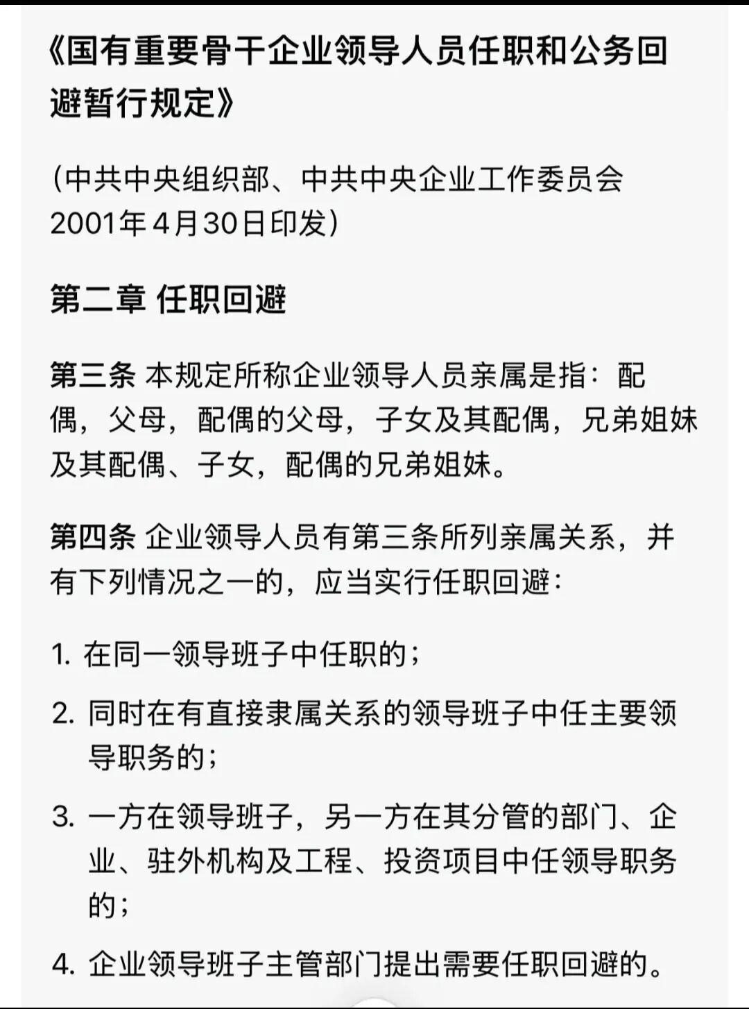 “查两类?太天真了!” 最新严查标准直指国企“家族化”病灶,覆盖范围从传统认知的直系血亲、夫妻关系,骤然扩大到令人窒息的四类关系: