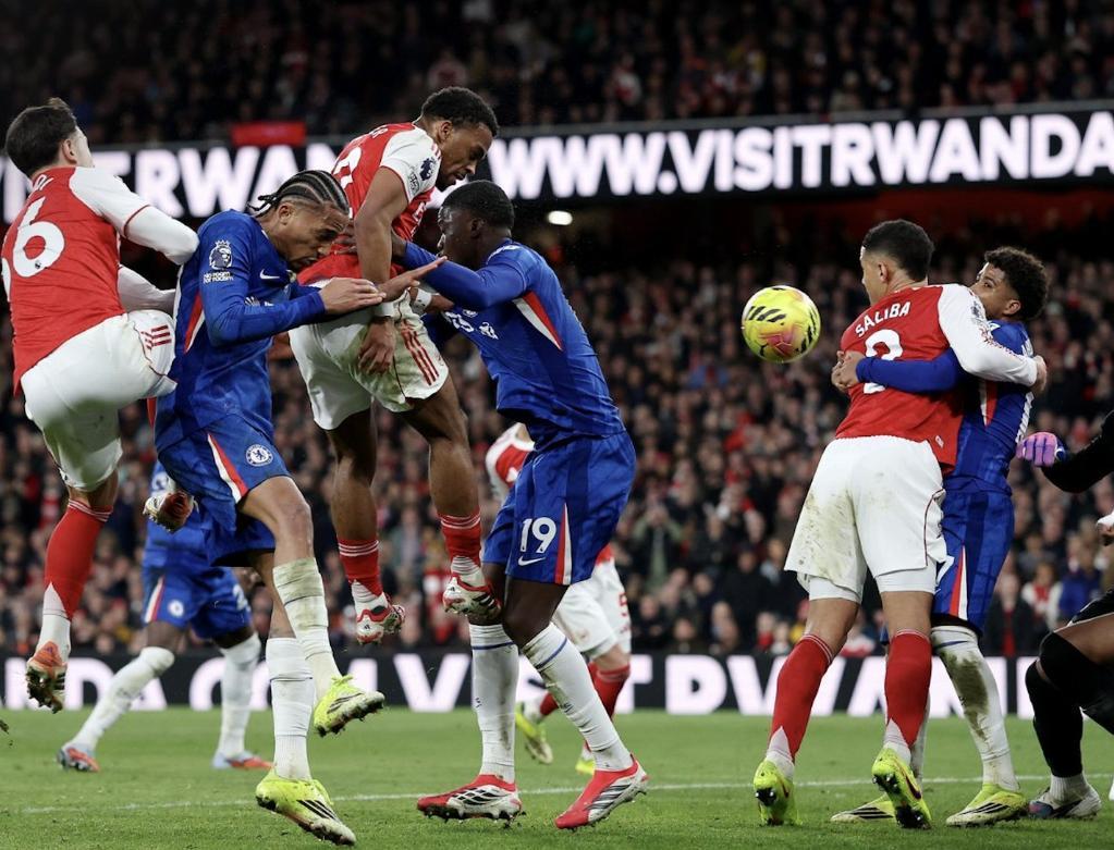 第21分钟被球迷称之为角球大队的阿森纳,利用自己的杀手锏打破了场上的平衡,右侧角球开出后,加布里埃尔后点头球摆渡到门前,萨利巴接力破门,将比分改写为了1-0,已经代表枪手在联赛打入20球并且送出5次助攻的加布里埃尔,成为了队史英超参与进球最多的后卫,不过半场结束前,切尔西的角球造成了因卡皮耶乌龙,双方带着1-1的比分,回到了中场更衣室。